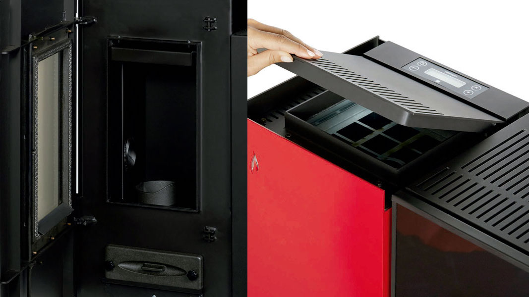 Salamandra a pellets de reduzido tamanho mas de alto desempenho, ideal para restaurantes ou residências com pouco espaço. Apresenta 3 acabamentos diferentes: preto, vermelho e branco.