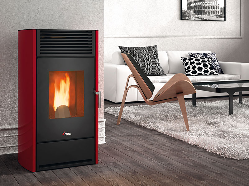 Salamandra com uma ótima relação Potência/Preço, com um design moderno, saída de fumos posterior, recolha de cinzas instantânea, cartão electrónico para programação semanal e telecomando.