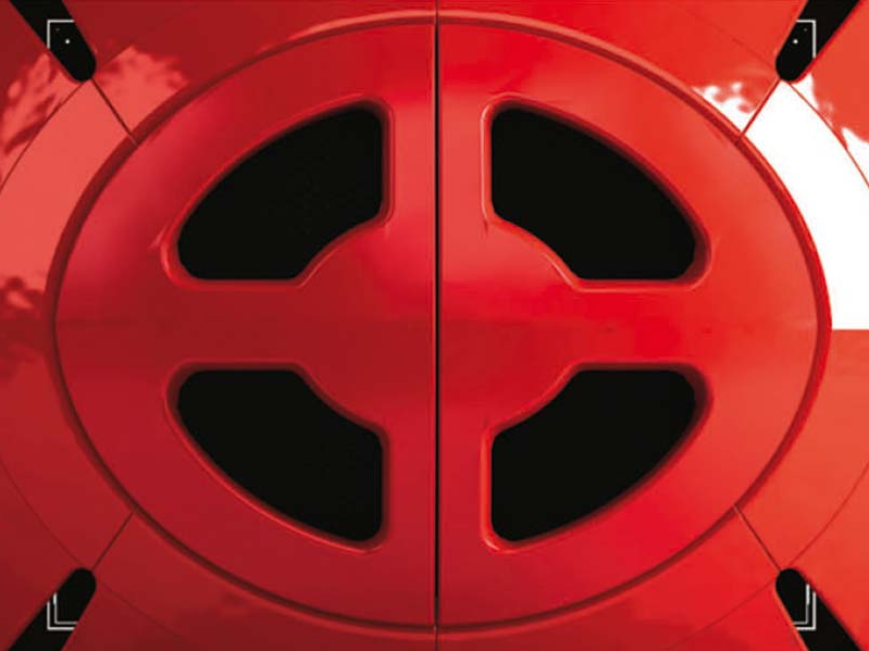 Salamandra a Lenha com design moderno oval e com revestimento externo em Maiolica. Corpo rotatório sobre o eixo da base. Gira até 90º. Vidro cerâmico resistente até 750 ºC.