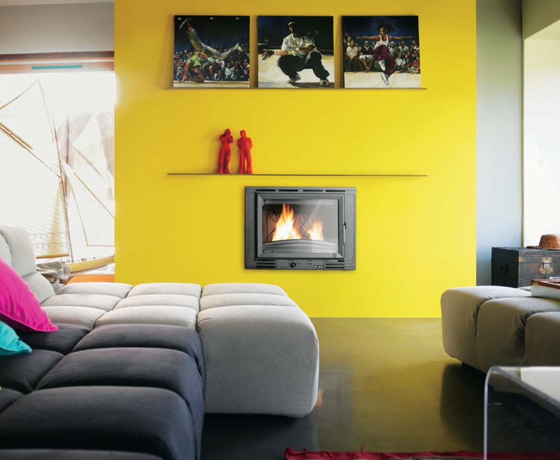 Recuperador de Calor a Lenha, com uma altura de frente de 52 cm e Sistema de Fogo Contínuo, bem como vidro limpo.