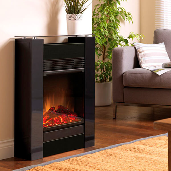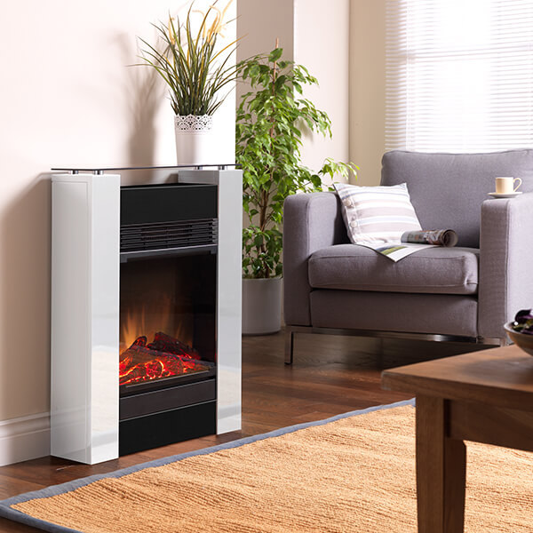 - Ventoinha de Aquecimento (possui uma ventoinha com 2 níveis de aquecimento, com botões de controlo oultos por um painel frontal por baixo da chama)